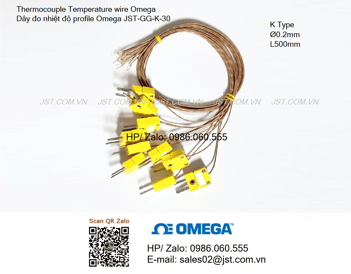 Omega Thermocouple Temperature wire - Dây đo nhiệt độ profile SMT Reflow Omega JST-GG-K-30-50 Ø0.2mm L500mm K Type Hàng có sẵn.