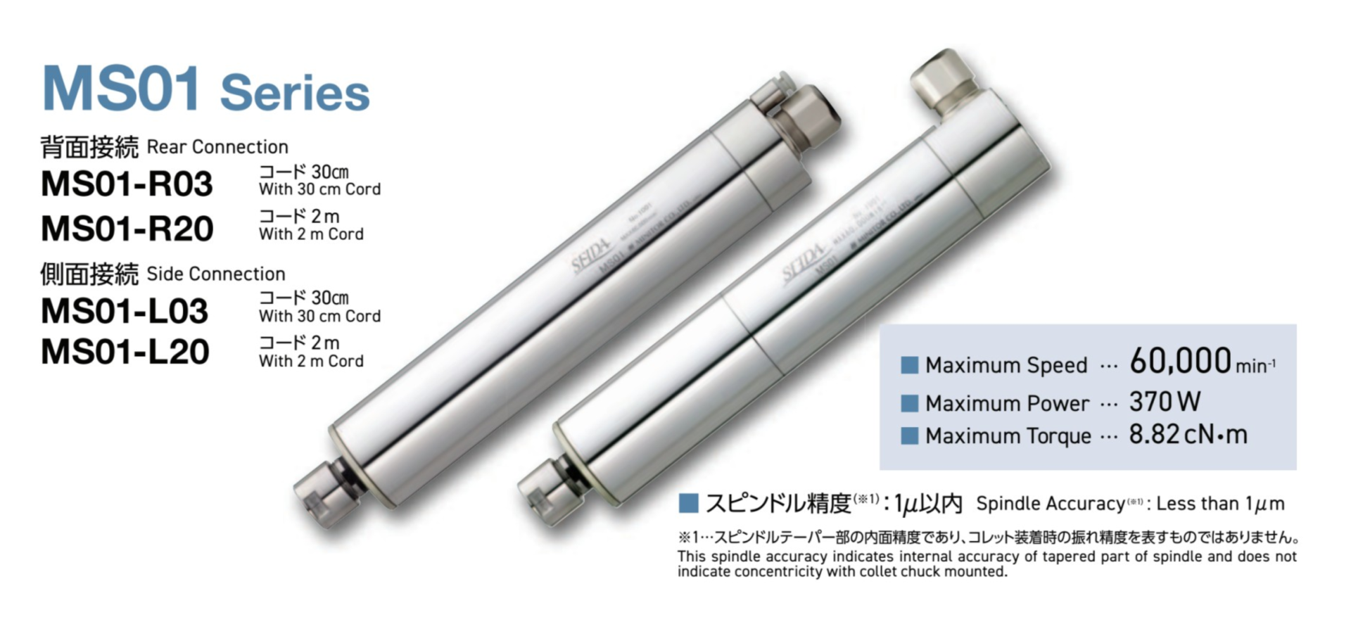 Sản phẩm tương đương: Tương tự như Sycotec made in Germany thì người Nhật cũng có dòng sản phẩm chất lượng rất tốt để thay thế (tốt cả về chất lượng và giá thành). Quý khách hàng tham khảo dòng straight spindle Minimotor made in Japan MS01 series tại link: https://www.minitor.co.jp/catalog7.0/html5.html#page=50