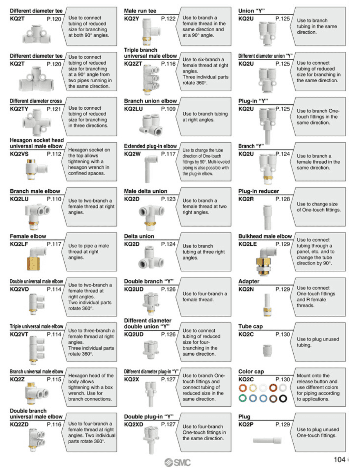 | 104 | Fitting SMC | KQ2H06-U03N | KQ2H16-03NS | KQ2S12-02S-X2 |