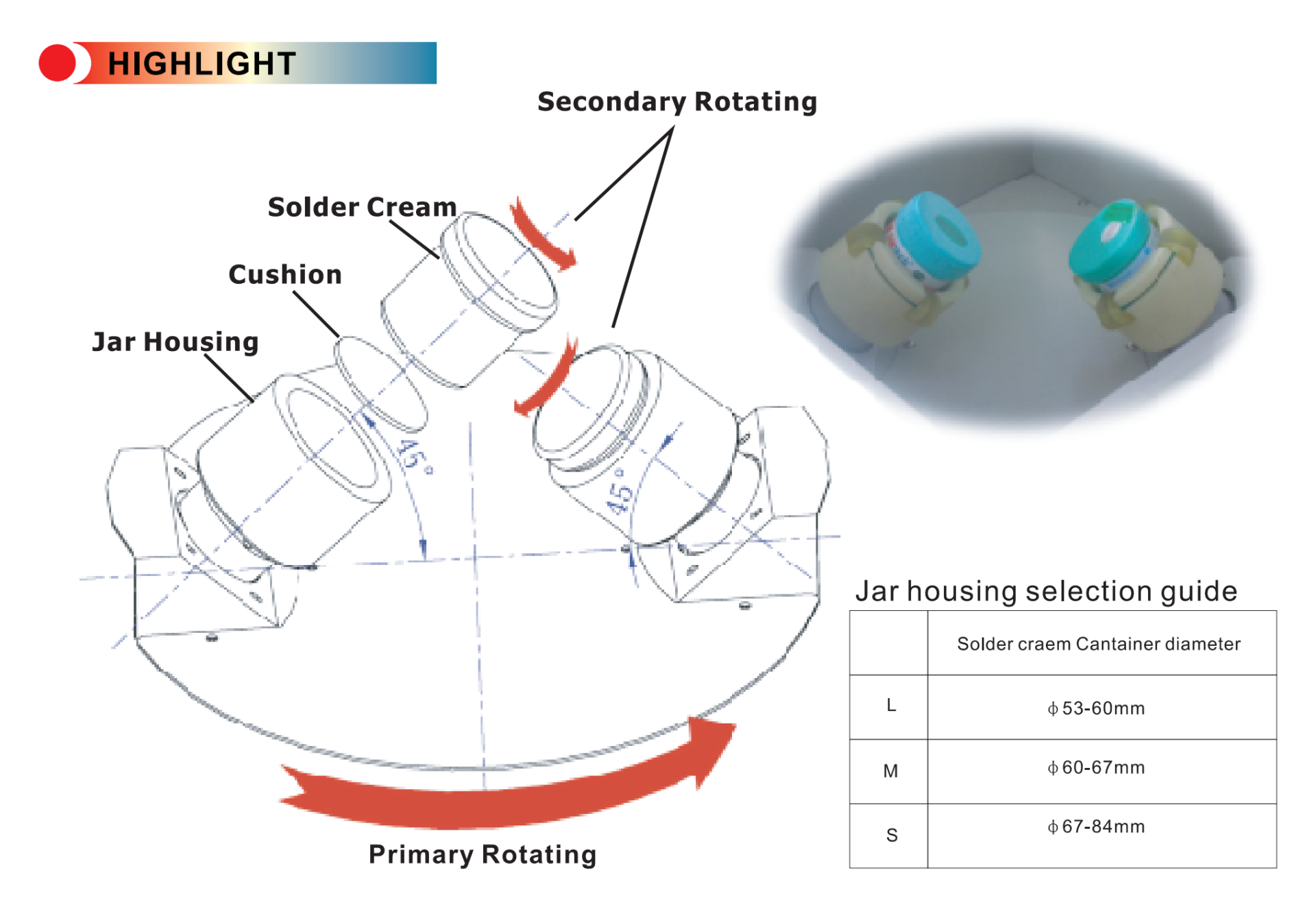 - Tốc độ quay: Vòng quay chính: 1000 vòng/phút Quay thứ cấp: 380 vòng/phút